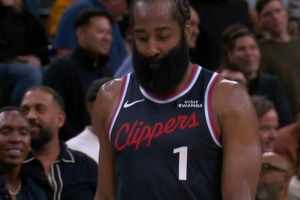 GIF-哈登追平的超远三分偏出!