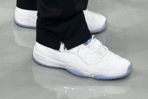 球鞋记者Nick DePaula报道,库里的私人保镖,他今天穿着的是 Air Jordan 11 “Columbia”配色。