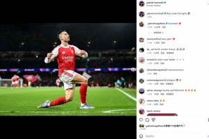 本场比赛马丁内利破门锁定胜局,赛后他也在社媒晒出本场庆祝进球照片,配文写道:“重回聚光灯下!”