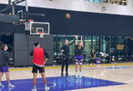 尽管因腹股沟酸痛缺席今晚比赛,但里夫斯依然参加了今天的投篮训练