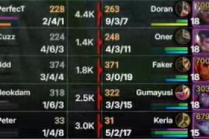 体育资讯11月9日讯 S15全球总决赛首局T1翻盘击败KT,Faker首局使用岩雀打出3-0-19的完美战绩。